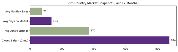 Forest Lakes continues to operate as one of the most constrained and lowest-volume markets in Rim Country, where even small changes in inventory or activity can create large percentage swings.