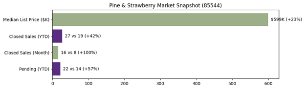 Pine and Strawberry is best characterized as a high-demand, low-volume market, where growth is real, but percentages must be interpreted alongside actual transaction counts.