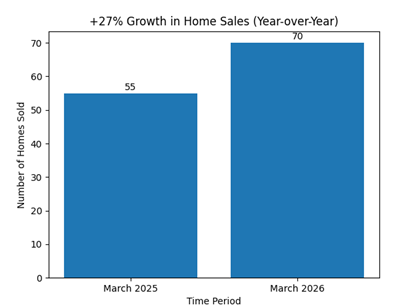 In March 2026, residential home sales across the CAAR market area increased more than 27% compared to the same time last year.  That kind of growth, especially in today’s environment, is not just notable. It is a clear signal that our market is operating under a different set of fundamentals.